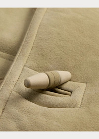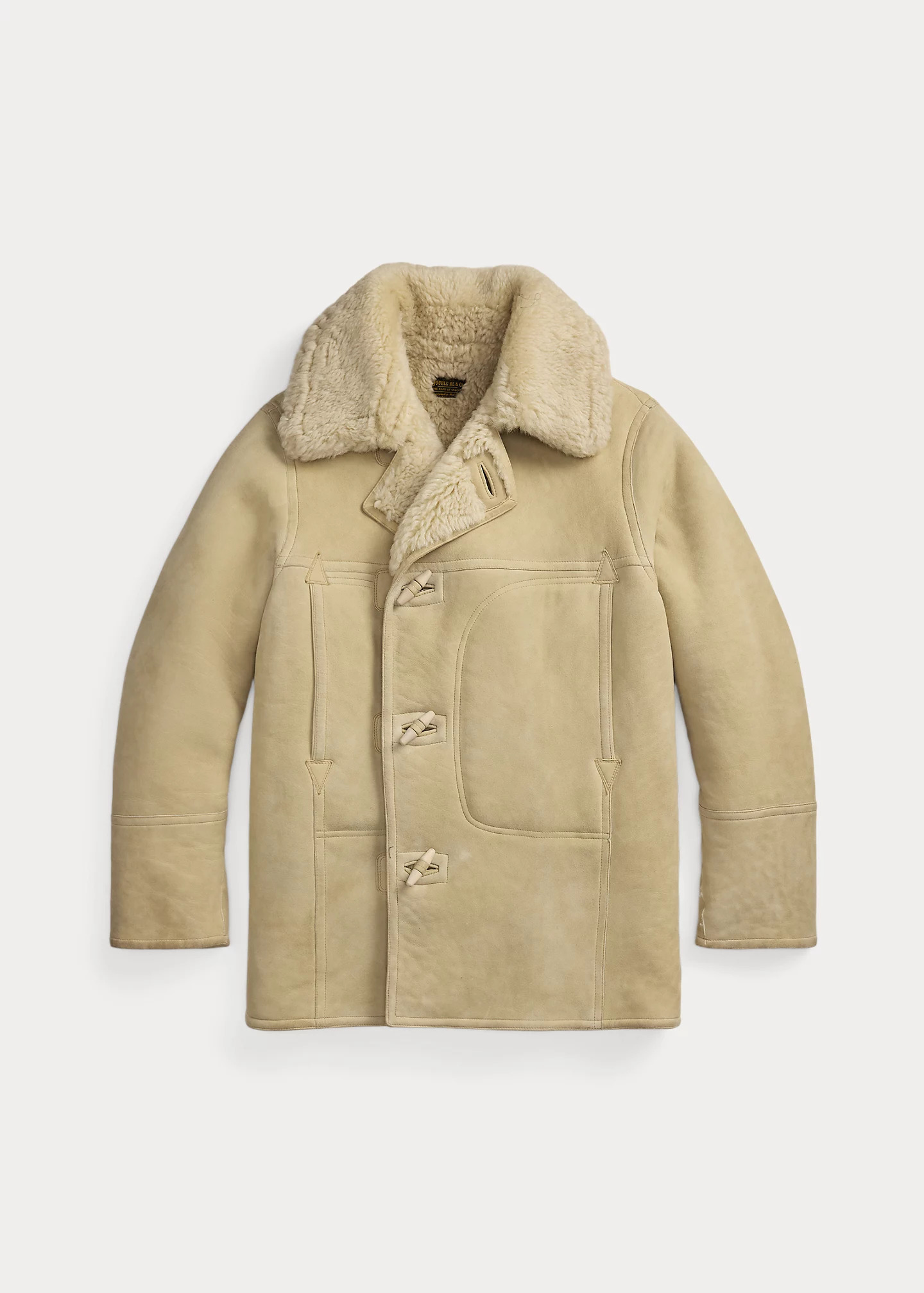 Made with soft, semi-curly shearling. Vintage-inspired model. Pieced-in paneling and pockets. Wooden toggles. DETAILS - Size medium has a 32.25" front body length, a 32.5" back body length, a 19.5" shoulder, a 48" chest, and a 35.5" sleeve length. Sleeve length is taken from the center back of the neck. - Oversize spread collar. Suede undercollar. Four wooden toggles and self-loop closures at placket. - Long sleeves. - Two hand-warmer pockets. - Unlined. - Shell: 100% dyed lamb shearling. Undercollar: 100% sheep suede. - Spot clean. - Imported. Shearling origin: Iceland. - Style Number: 100062923