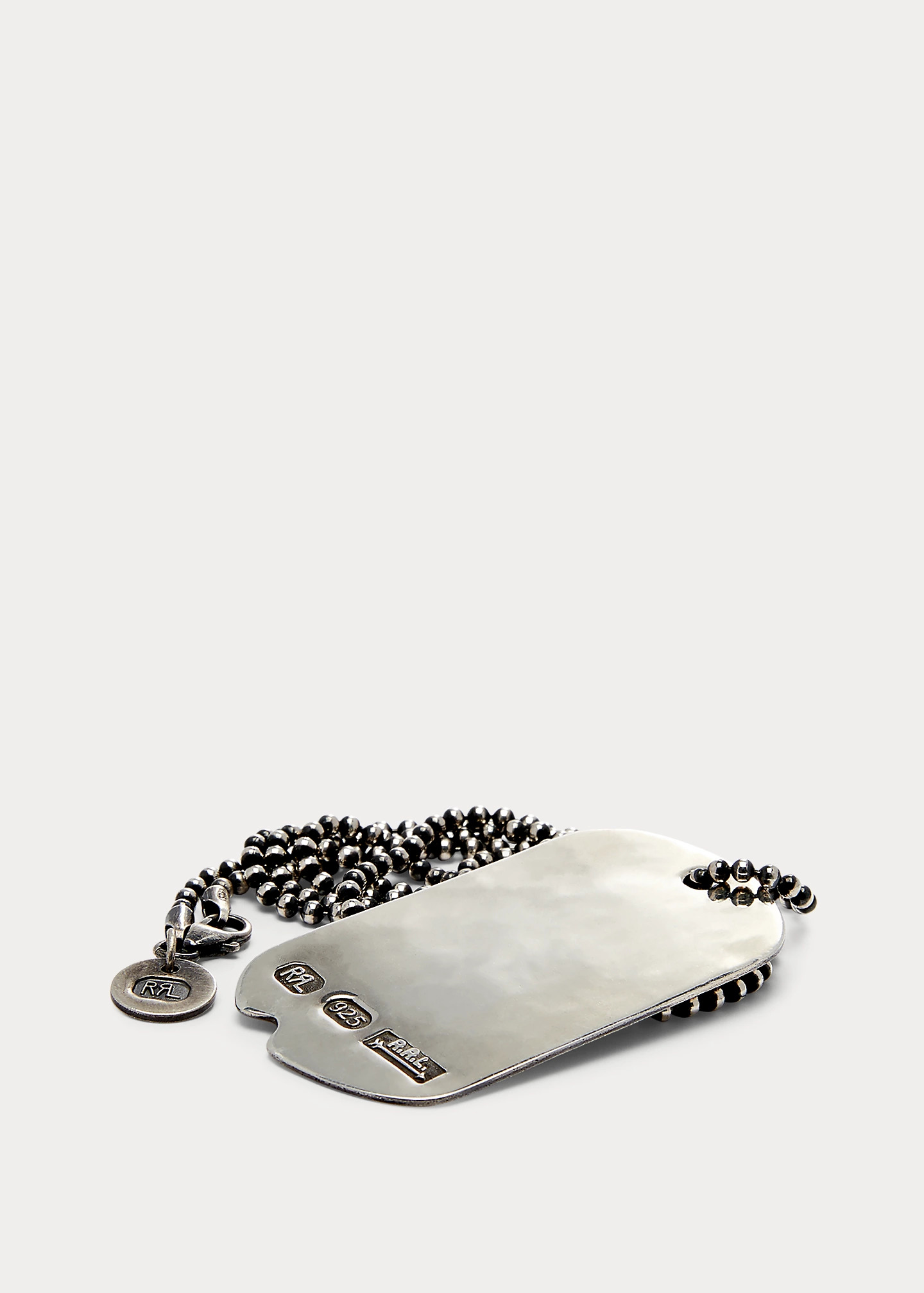 Inspired by WWII dog tags. Made in the USA from unlacquered sterling silver that's hand-hammered. DETAILS - 15" L. - Lobster-clasp closure with an "RRL"-stamped charm. - "RRL," "925," and the Double RL Ranch brand stamped at one side of the dog tag. - Sterling silver. - Presented in our signature "RRL"-embossed box and includes a storage bag. - Made in USA. Style Number: 394750