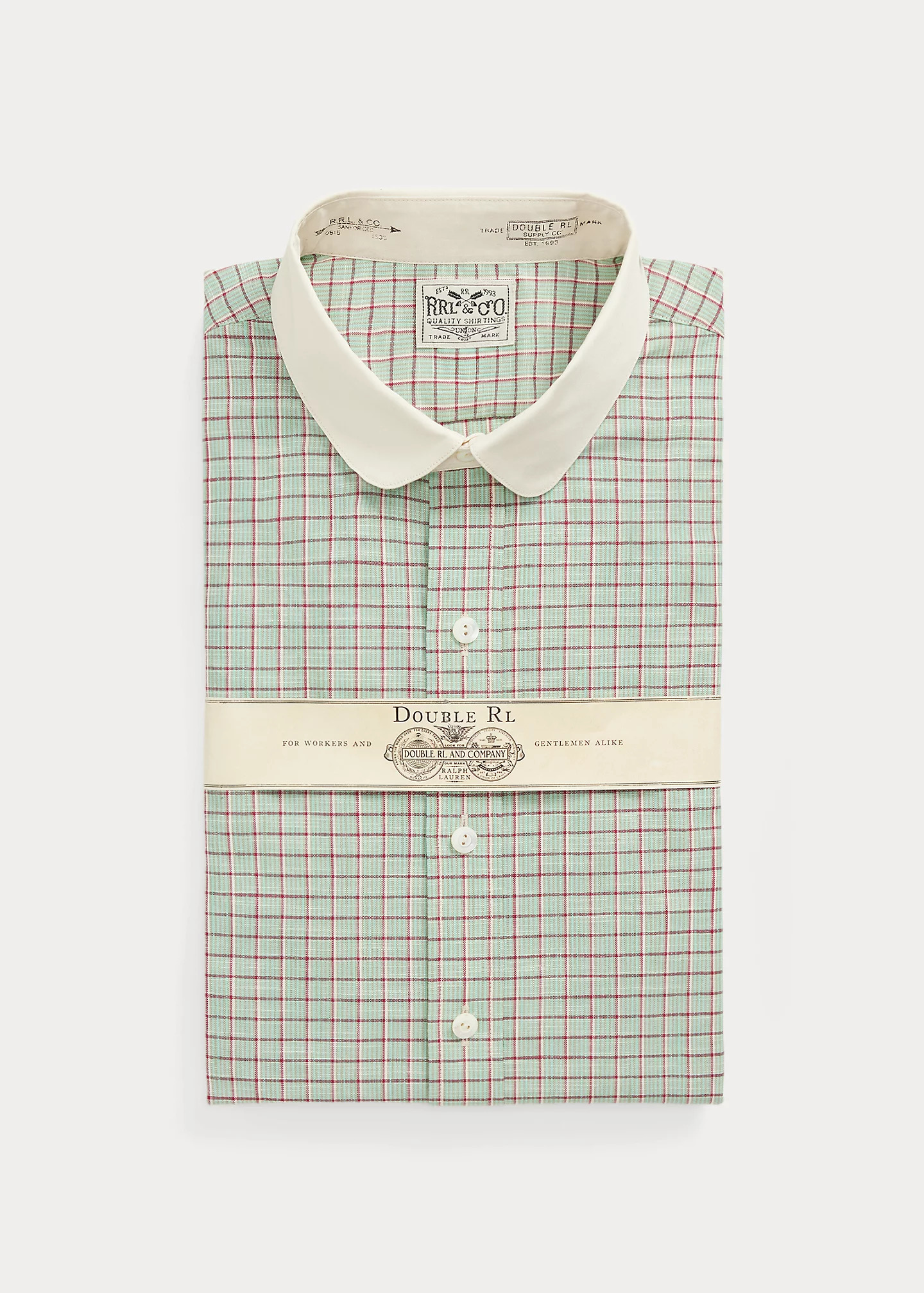 Slim-fitting shirt made with yarn-dyed cotton dobby that is inspired by an antique textile. Contrasting club collar. Genuine mother-of-pearl buttons. DETAILS - Slim fit. - Size medium has a 30.5" back body length, an 18" shoulder, a 43" chest, and a 34.75" sleeve length. Sleeve length is taken from the center back of the neck. - Contrasting club collar. Buttoned placket. Genuine mother-of-pearl buttons. - Long sleeves with buttoned barrel cuffs. - Shirred back yoke. - 100% cotton. - Machine washable. - Imported. - Model is 6'1" (185 cm) and wears a size medium. - Style Number: 100059666