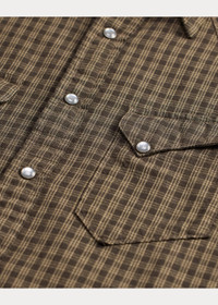 Slim-fitting shirt made with yarn-dyed checked cotton fabric. Western-style yokes and pockets. Metal button at the collar. DETAILS - Western Fit: Double RL’s slimmest shirt silhouette. Cut trim through the body and the sleeves. - Size medium has a 29.25" back body length, an 18.5" shoulder, a 45.5" chest, and a 34.75" sleeve length. Sleeve length is taken from the center back of the neck. - Straight collar with a metal button at the front. Snapped placket. Western-style front and back yokes. - Long sleeves with snapped barrel cuffs. - Two chest snapped pockets. - 100% cotton. - Machine washable. - Imported. - Style Number: 100078198