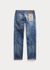 Made in America with Tennessee-grown cotton. Yarn is ring-spun and rope-dyed in Japan using true indigo. Woven on vintage shuttle looms in Japan to create custom 15.92 oz. right-hand twill. Selvedge construction inspired by ’30s denim. Hand-finished in a process that involves up to 50 individual steps using specialized tools and techniques. DETAILS - Slim Fit: a medium-low rise and a slim thigh and leg. - Size 32W has a 9" rise and a 14.5" leg opening. - Hand-set chain-stitched waistband with inserted belt loops for added durability. Button fly with our signature buttoned closure ensures a consistent fit through years of wear. - American-made buttons, rivets, and washer burrs. Five-pocket styling. "RRL" embroidery at the selvedge coin pocket. Twill pocket lining. - Leather "RRL"-debossed logo label at the back right waist. - Shell: 100% cotton. Patch: 100% leather. - Machine washable. For best results, wear 90 days without washing. - Made in USA with imported components. - Dyed with indigo, which may rub off onto fabrics, leather and upholstery. - Style Number: 538583