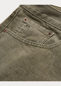 Slim-fitting jeans made from 13.6 oz. Japanese right-hand twill. Zip-fly construction. Sanforized® to minimize shrinkage. DETAILS - Slim Fit: a medium-low rise and a slim thigh and leg. - Size 32W has a 9" rise and a 14.5" leg opening. - Hand-set, chain-stitched waistband with inserted belt loops for added durability. Zip fly with our signature buttoned closure. - American-made buttons, rivets, and washer burrs. Five-pocket styling. “RRL” embroidery at the coin pocket. - “RRL”-debossed logo label at the back right waist. - 100% cotton. - Machine washable. For best results, wear 90 days without washing. - Imported. - Due to the natural characteristics of this material, the coloring may rub off onto fabrics and upholstery. - Style Number: 648411