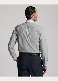 Slim-fitting shirt made from a print woven fabric that is inspired by an antique textile. Vintage-style contrasting straight collar. Patch pocket at the left chest. Genuine mother-of-pearl buttons. DETAILS - Slim fit. - Size medium has a 30.5" back body length, an 18" shoulder, a 43" chest, and a 34.75" sleeve length. Sleeve length is taken from the center back of the neck. - Vintage-inspired contrasting straight collar. Buttoned placket. Genuine mother-of-pearl buttons. - Long sleeves with buttoned barrel cuffs. - Left chest patch pocket. - Shirred back yoke. - 100% cotton. - Machine washable. Imported. - Model is 6'1" (185 cm) and wears a size medium. - Style Number: 100058621