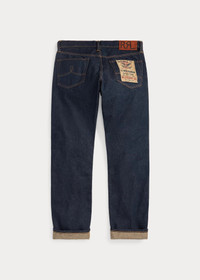 Made in America from 15.3 oz. Japanese selvedge denim. Cut for a straight-leg silhouette. Custom-developed dark indigo shade. Hand-finished. Given a clean-water rinse and bake-dried. Sanforized® to minimize shrinkage. DETAILS - Straight Fit: a regular rise and a straight leg. - Size 32W has a 9.75" rise and a 16.5" leg opening. - Hand-set chain-stitched waistband with inserted belt loops for added durability. Button fly with our signature buttoned closure ensures a consistent fit through years of wear. - Five-pocket styling with authentic washers and rivets. Selvedge coin pocket. "RRL" embroidery at the coin pocket. Heavy twill pocket lining. - Leather "RRL"-debossed logo label at the back right waist. - Shell: 100% cotton. Patch: 100% leather. - Machine washable. For best results, wear 90 days without washing. - Made in USA with imported components. - Model is 6'1" (185 cm) and wears a size 32W x 32L. - Style Number: 323169