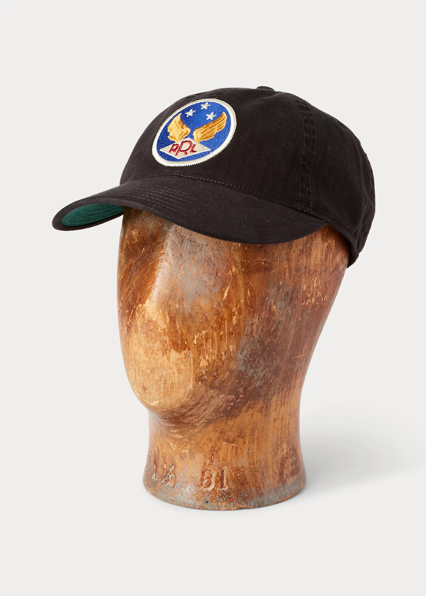 Made from cotton herringbone twill. Garment-dyed and washed for a vintage look. Signature logo patch at the front. DETAILS - Sewn bill. Signature green underbill. - Six-panel construction. - Ventilating embroidered eyelets. - Winged-“RRL” patch at the front. - Adjustable snapped back strap. - Twill sweatband. - 22¾" inner circumference. - Cotton. Hand wash. - Imported. Style Number: 577154