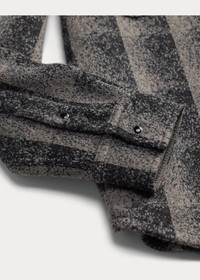 Overshirt sweater made with wool and cashmere. Knit using a birdseye-jacquard technique and heavily washed to create a dense, warm fabric. Ombre plaid pattern inspired by a 1940s model. Western-style back yoke. Metal button at the collar. Twill reinforcements at the interior. DETAILS - Size medium has a 27.75" body length, an 18" shoulder, a 42" chest, and a 25.5" sleeve length. - Straight collar with a metal button at the front. Snapped placket. Western-style back yoke. - Long sleeves with snapped barrel cuffs. - Two chest snapped pockets. Two hand-warmer pockets. - Twill reinforcements at the interior. - Shell: 99% wool, 1% cashmere. Yoke lining: 51% cupro, 49% cotton. - Hand wash or dry clean. - Imported. - Style Number: 100076885