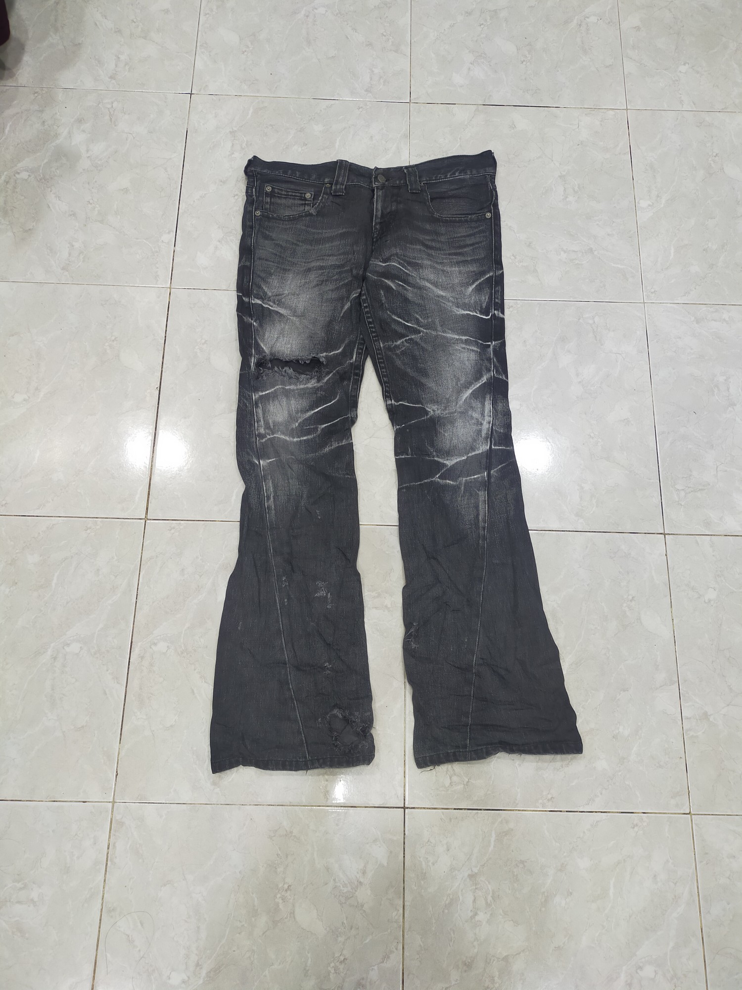 Hello and thanks for your interest. Before purchasing,please note this is pre-owned and some item is vintage and are not new and therefore might have minor imperfections. This item have nice design.Distressed style maybe..Once deal is done.Please refer photos given. Returnable not accepted. Condition:in good condition Size on tag:L Waist:34.8 inch Inseam:31 inch Leg opening:19 inch Front rise:9 inch Thigh:21 inch Knee:16 inch We guarantee satisfiction&authenticity item. Payment method:paypal Shipping:will shipped 1-3 day working day after payment with tracking numbers using DHL worldwide/Fedex. P/s : During shipping we always declare the item as a “Gift” and stated lower value than the original price for “Custom Declaration” to avoid taxes on buyer. Note: An item has been used or worn previously. ATTENTION: Please pay close attention to measurements provided. Do not rely on tag size as pre-worn items may have been altered, stretched or shrunk & vintage sizes do not directly tran