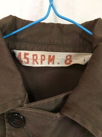 Kindly please read all the description. Don’t hesitate to ask any questions. Buy with confidence :) Tag read : 45RPM Size : M Kindly see the actual measurements :- (All measurements were taken while garment lying flat) Actual size MANUAL MEASUREMENT (approximately) :- Armpit to armpit : 20 inch Shoulder to shoulder : 16.5 inch Length : 27.5 inch Sleeve length from shoulder : 22.5 inch Materials :- Cotton Made in Japan Condition : Good. One defect at left sleeve..~used (please refer pic) Please enlarge the photos to get clearer image. Please pay attention to given measurements & Kindly to see all pictures. This is USED & Vintage items, so do not expected it to be like New Condition! EXPRESS SHIPPING Shipping Price 33$ 3 to 7 days worldwide depends on location If you prefer EXPRESS SHIPPING, please DM us. Please leave your phone number on the note when making an order. Thanks for your visit. ATTENTION :- -I accept payment through Grailed only. Your tracking information will be sent to you. -Please pay immediately after offer accepted -All sales final, no refunds/returns. I will not accept return if you can’t fit. As i already gave my manual measurement. -The best way to confirm correct fit is compare your similar item measurements that fits you well with our measurement. **Vintage sizes do not directly translate the modern sizes. SKU A THANK YOU. HAPPY SHOPPING