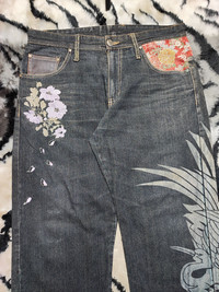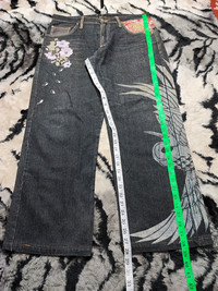 @nacruthrift ig for check all our activity about thrifting. All item is also available in our physical store so don't wait! It might sell quickly We'll remove the listing once it's sold in person Grab it now before gone Description : Gumu Sukajan Denim * Condition: Perfect used but still nice to wear it * Size: 34 inch (refer manually measurements in photo) * Shipping Express Only * Estimate delivery in 1 week or before. * Trusted seller * Excellent feedback * Fast safe shipping express only * Open to offers * New items daily * All final sale no return and refund
