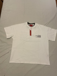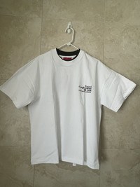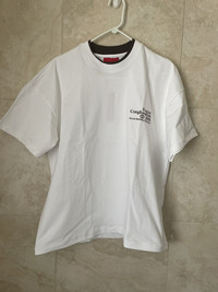 7.7oz cotton white t-shirt with screen printed graphics double layered collar ladder stitch construction and cropped boxy fit Color: white Size: Mens medium Condition: brand new Authentication all items I get is 100% authenticated from selected retailers. If you have any questions please ask and respect both sides of users and me. Thankyou for shopping with me.