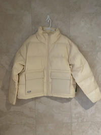 Vault by Vans and Joefreshgood. Crafted from quilted polyester, the soft buttercream resort puffer jacket is designed to a classic fit with elongated sleeves. Standard fit. Slightly elongated sleeves. Condition: Brand New Size: Mens medium