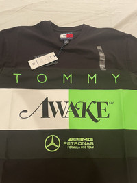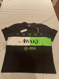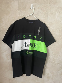 The laid back silhouette if this tshirt is elevated by striking flag design. Pure organic cotton crew neck Tommy’s Mercedes’x New York on chest. Condition : brand new Color: black/bright green/ white Size: Mens Large.