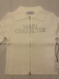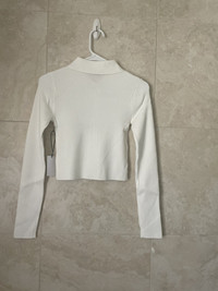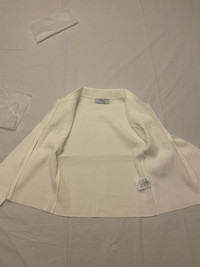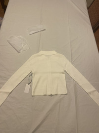 Praying Zipper sweater. Very stretchy. The material great. Size: womens medium Color: white Condition: brand new