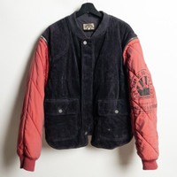 1990s Armani Modular Hunting Jacket with Purple Corduroy Base and Red Quilted Nylon Sleeves βββ πππππ’π₯: Made in Italy Season: ~Autumn/Winter Year: 1990s Fitting: Regular Material: Corduroy / Nylon Condition: 7/10 (General wear / sun fading on neck ) Color: Purple / Red Price: 300$ βββ Size 50 Shoulder 51 Chest 60 Length 70 Sleeve 70