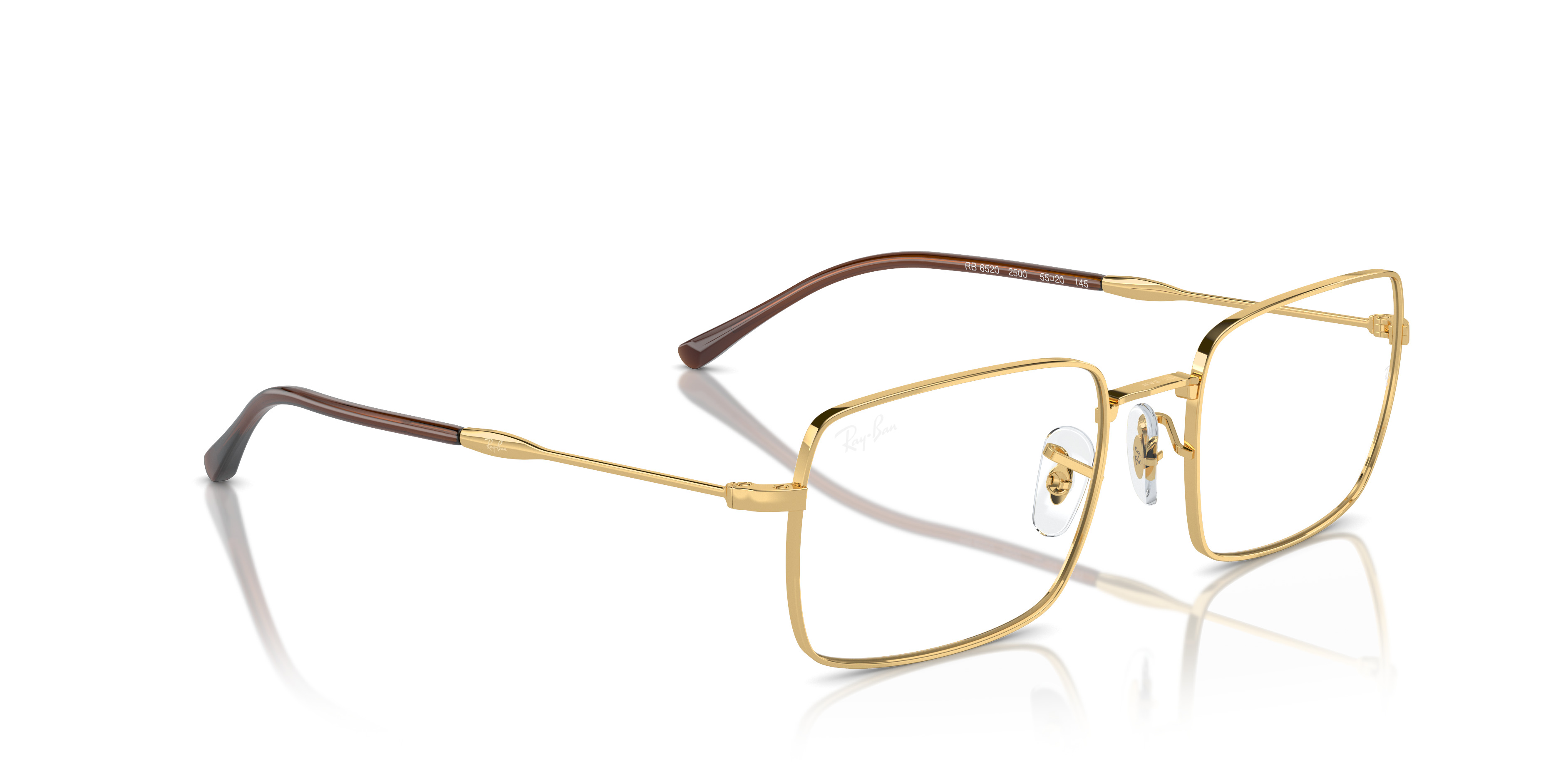 MODEL CODE RX6520 2500 55-20 FRAME DESCRIPTION FRAME SHAPE Rectangle FRAME COLOR Polished Arista Gold FRAME MATERIAL Metal TEMPLE COLOR Arista Gold LENS INFORMATION LENS COLOR Clear TREATMENT Demo Lens PRODUCT DIMENSIONS HINGE TO HINGE 133 mm LENS HEIGHT 40.4 mm BRIDGE WIDTH 5520 mm TEMPLE LENGTH 145 mm FITTING FITTING Narrow BRIDGE & NOSEPADS Adjustable Nosepads