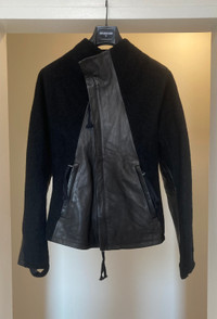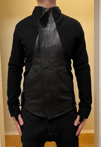 Boris Bidjan Saberi AW 2013 P1 F1904 Black Cowhide + Boiled Wool Washed Black Beautiful leather. Super smooth, thick, juicy. Gorgeous deep black wool, thick, super sturdy, awesome texture. This is a really bad ass, elegant piece. Super rare especially in this absolutely perfect condition. A remarkable example of early Boris gorgeousness Amazing construction and tailoring, superb fit 2 way riri front zip 2 riri zip outer pockets 1 inner pocket with zip Carrying strap Size tag S (see fit pics, I am 1.79 m & weigh around 162 lbs) Absolutely perfect condition (see pictures ), stored in garment bag Measurements : Shoulder to shoulder: 17” 1/2 Pit to pit: 18” 1/2 Back length: 25” Open to offers and trades Meet ups in nyc possible Feel free to check out my other listings (more BBS, Carpe Diem, Deepti, Julius, A1923, Layer-0, Guidi, Plokhov, Devoa, Rick etc...) @bruuklyn for quicker replies