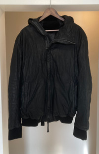 Boris Bidjan Saberi AW 2022 Zipper 22.1 FMM20020 Black Object Dyed Body Molded Veg Tan Horse Skin Primaloft 80 gr padding Truly stunning leather. Deep black. Super thick, super smooth and buttery. Amazingly comfortable to wear. Warm. A beast. Amazing construction with super thick, sturdy, expendable ribbing at arm pits, along the sleeves, at waist and behind the hood Two big, super sturdy 2-way riri front zips 2 outer pockets with riri zips 1 inner pocket with riri zip Carrying straps Thumb holes Size tag L Sterling silver hardware Pics are of the actual item and from Hide Munich Absolutely brand new condition, never worn, stored in BBS garment bag (and comes with OG Boris bag) Measurements (approximate due to construction): Shoulder to shoulder: 21” Pit to pit: 21” Back length: 28” Open to offers and trades (especially for J2/J3/J4 or Zipper 22 in S or possibly M) Meet ups in nyc possible Feel free to check out my other listings (more BBS, Carpe Diem, Deepti, Julius, A1923, Layer-0, Guidi, Plokhov, Devoa, Rick etc...) @bruuklyn for faster replies