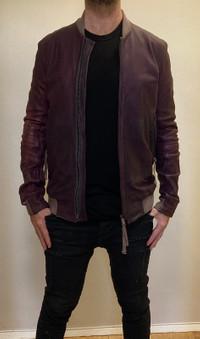 True Grail Boris Bidjan Saberi AW 2018 J3-FMM20002 Murex Purple colorway Veg tan horse skin This leather is incredible: thick, heavy, supple, just extraordinary stuff The Murex colorway is a masterpiece: extremely complex, changes a lot depending on lighting conditions (see pictures) This is one of those magical Boris dyes where every single piece is truly unique. I have another Murex J3 listed here, same size, same brand new condition, and the dye patterns are quite different. On this J3 the dye patterns on one sleeve are very different from the other. (This J3 is the one at the bottom on the picture with both jackets). Just awesome stuff. Some Murex pieces are pinker than this one, which is on the darker, even deep deep blue end of the spectrum (see pictures) Object Dyed Body Molded Unique, bad-ass and super elegant Two way front riri zip Two outside pockets with zips, lined with leather Two inner pockets with zips Carrying straps Heavy knit ribs at wrists and waist Brand new. Worn twice only. Stored in garment bag since. Size Tag XS but, as most J3s, this fits bigger: i am 1.79 m and around 72 kgs and it fits me like a dream (see fit pic). Perfect for XS, S, small M depending on preferred fit (loose bomber look vs traditional tight fit leather jacket). This J3 is a tad smaller than the other one I am also selling here Measurements (approximate due to construction) : Shoulder to shoulder: 18" 1/4 Pit to pit: 19” 1/2 Back length: 24” Open to offers and trades NYC meet ups possible Feel free to check out my other listings (more BBS, Layer-0, Deepti, Leon Emanuel Blanck, Plokhov, A1923, CCP, Paul Harnden Shoemakers, Devoa, Julius, Guidi, Rick, etc...) @bruuklyn for faster replies