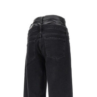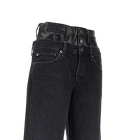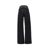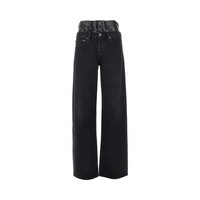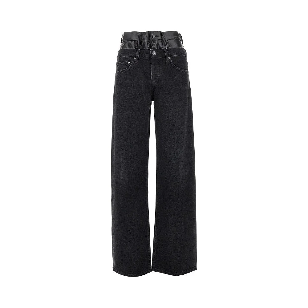Five-pocket jeans made from regenerative cotton denim with light distressed effect at edges, featuring double-waisted design with the inner one in soft recycled leather. Relaxed fit with straight leg and high-rise waist. Belt loops and buttons closure. DETAILS Model code: A298-1817 Color code: DTRV Season: SS26 Material: 100% CO, 50% REC LH, 30% PU, 10% VI, 10% PL Made in: Turkey Sku: 28916 Color: Black Brand: AGOLDE