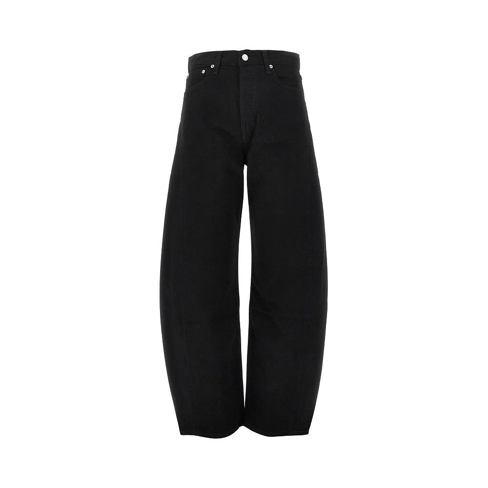 Five-pocket jeans made from regenerative cotton denim, featuring high-rise silhouette with wide and curved leg. Belt loops, buttons fly and silver-finished metal button closure. DETAILS Model code: A9218-1817 Color code: CVR Season: SS26 Material: 100% CO Made in: Turkey Sku: 28950 Color: Black Brand: AGOLDE