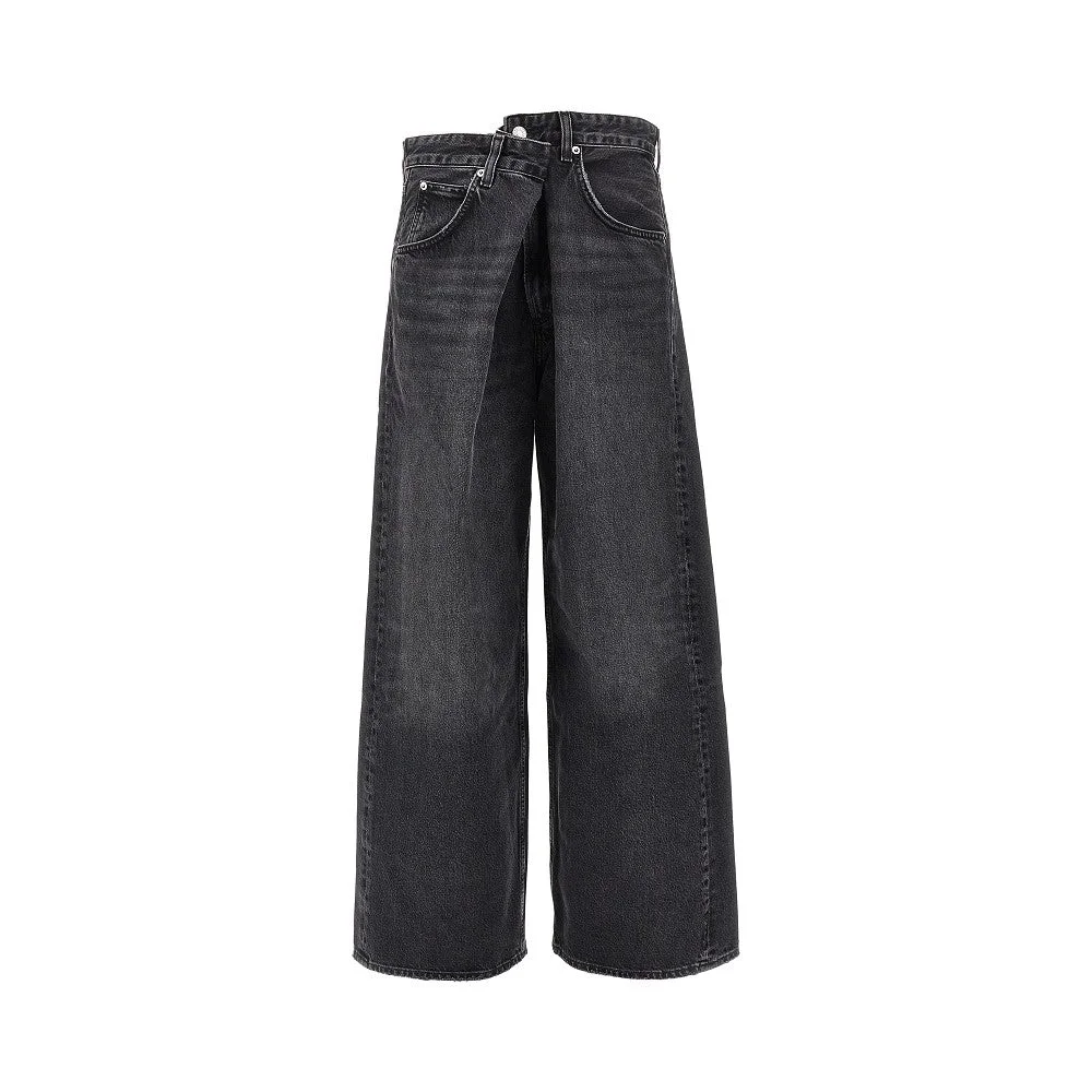 Five-pocket jeans made from regenerative cotton denim with washed-out and slightly distressed finish, featuring folded detail at waist with concealed hook. Belt loops, zip fly and button closure. Baggy and relaxed fit with high-rise waist. DETAILS Model code: A241-1817 Color code: ARNE Season: SS26 Material: 100% CO Made in: Turkey Sku: 28852 Color: Black Brand: AGOLDE