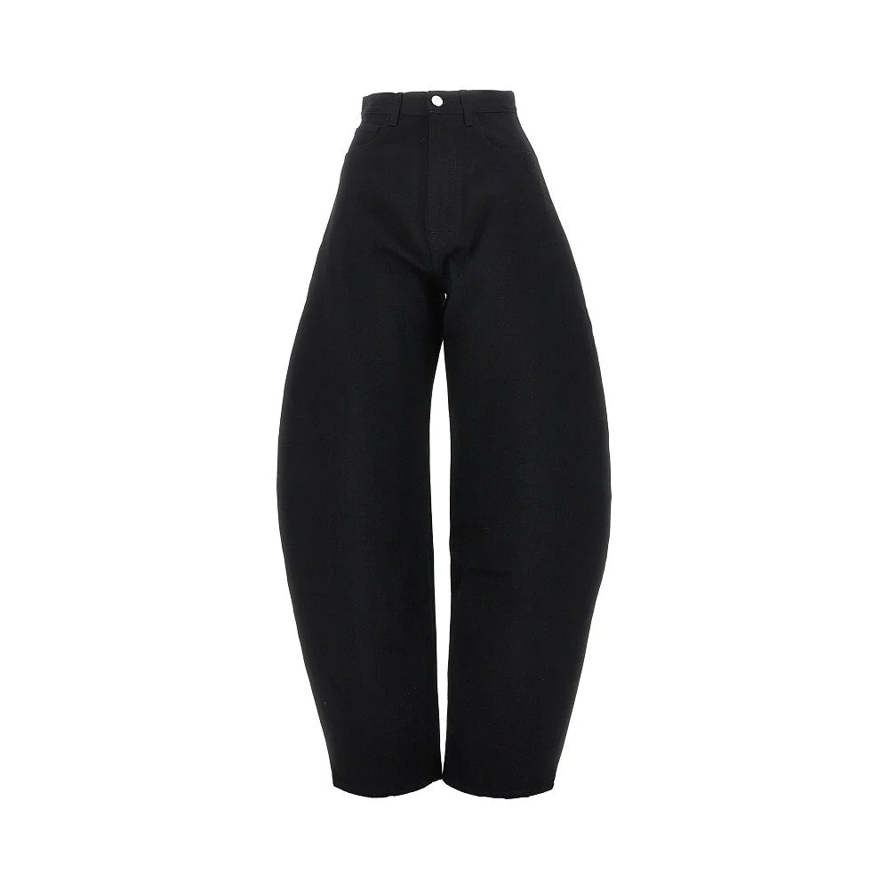 Five-pocket jeans made from Stone Washed denim, featuring rounded rounded leg silhouette. Belt loops, zip fly and button closure. High-rise waist. DETAILS Model code: AA9P0176D003A Color code: 995 Season: SS26 Material: 99% CO, 1% PU Made in: Italy Sku: 32077 Color: Black Brand: ALAIA