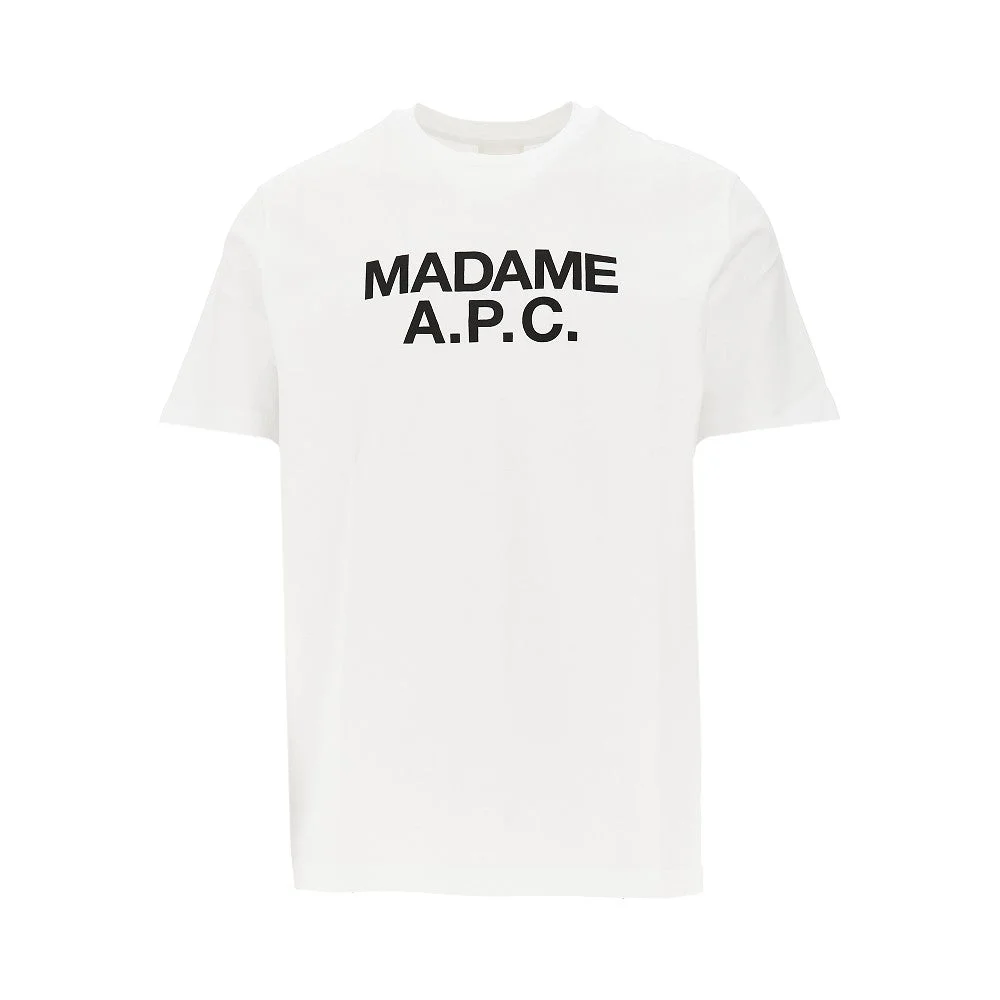 Short-sleeved T-shirt made from organic cotton jersey, enriched with "Madame" logo print at front. Micro ribbed crewneck. Regular fit. DETAILS Model code: COGYKM26462 Color code: AAB Season: SS26 Material: 100% CO Made in: Portugal Sku: 29799 Color: White Brand: A.P.C.