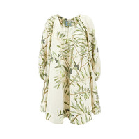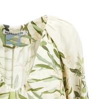 Mini dress made from lightweight linen canvas with floral print. Pluning U-shaped neckline, long bishop sleeves with gathered hem and side inseam pockets. Unlined. Flared and fluid silhouette. DETAILS Codice Modello: GEORGETTE Stagione: FW25 Materiale: 100% LI Made in: Romania Sku: 23037 Brand: BERNADETTE