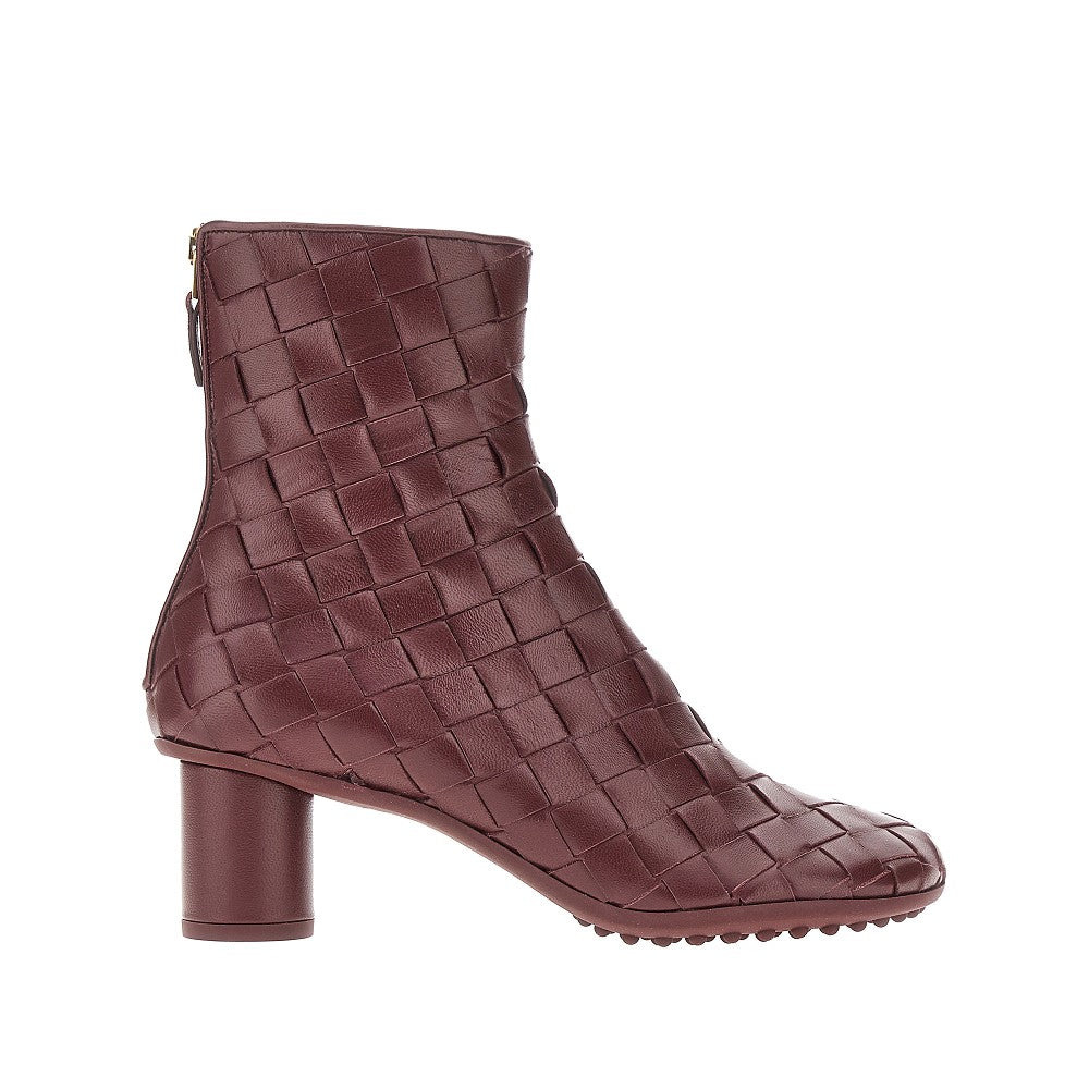 Ankle boots made from soft leather, featuring signature Intrecciato motif. Wide and rounded toe. Zip closure on the back and leather covered tubular heel. Leather lining and insole. Rubber sole. DETAILS Heel: 5 cm Codice Modello: 811017 Stagione: FW25 Materiale: 100% LH Made in: Italy Sku: 27922 Brand: BOTTEGA VENETA