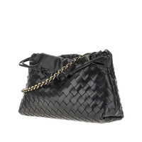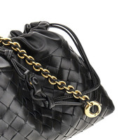 Pouch made from smooth leather with signature Intrecciato motif, featuring drawstring closure whose ends can be connected to create an handle. Equipped with detachable shoulder strap in woven leather and gold-finished metal chain. Nylon lining. DETAILS Height: 19 cm Depth: 9 cm Width: 32 cm Strap: 90 cm Codice Modello: 839394 Stagione: FW25 Materiale: 100% LH Made in: Italy Sku: 26869 Brand: BOTTEGA VENETA