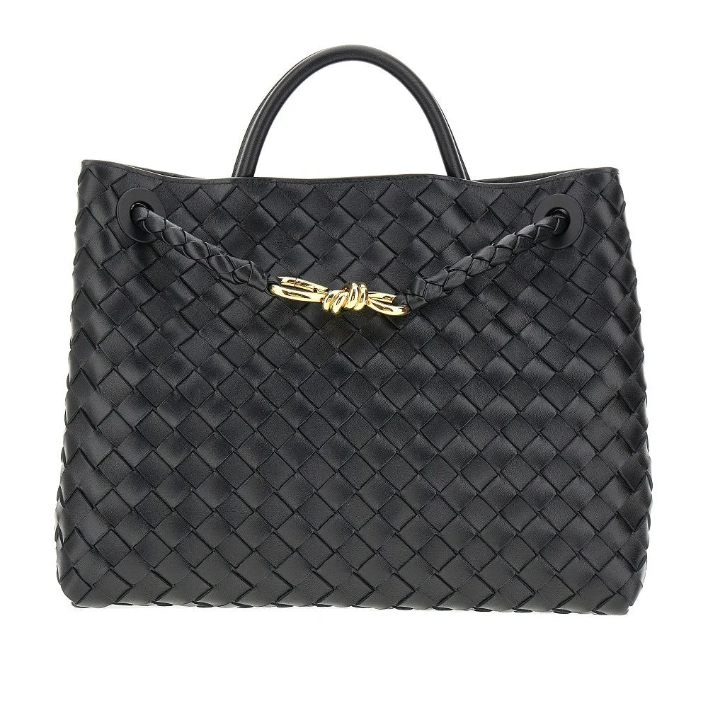 Medium Andiamo bag made from nappa leather with signature Intrecciato motif. Single handle and sliding strap with gold-tone metal knot detail to carry on the shoulder or cross-body. Magnetic closure. Unlined interior with a flat insert in smooth leather featuring two open pockets and a zippered one. DETAILS Height: 25 cm Depth: 12 cm Width: 30 cm Codice Modello: 766016 Brand: BOTTEGA VENETA Stagione: SS24 Materiale: 100% LH Made in: Italy Sku: 10477