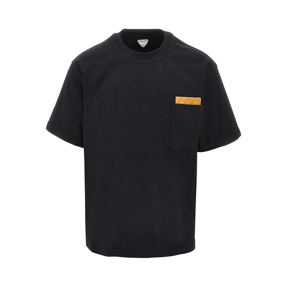 Short-sleeved T-shirt made from Pima cotton jersey, featuring chest patch pocket enriched with suede leather patch with signature Intrecciato motif. Micro ribbed crewneck. Regular fit. DETAILS Model code: 838924 Color code: 1000 Season: FW25 Material: 100% CO Made in: Italy Sku: 26840 Color: Black Brand: BOTTEGA VENETA