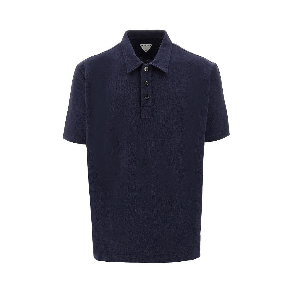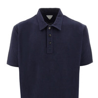 Short-sleeved polo shirt made from cotton piquet, enriched with tone-on-tone signature embroidery on the bottom side. Three horn buttons closure. Side splits at bottom. Regular fit. DETAILS Codice Modello: 820677 Stagione: SS25 Materiale: 100% CO Made in: Italy Sku: 17019 Brand: BOTTEGA VENETA