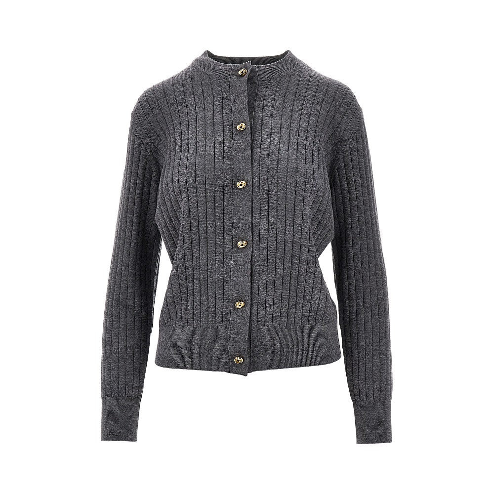 Cardigan made from fine wool yarn with ribbed motif, featuring front closure with gold-finished metal "Knot" buttons. Micro ribbed crewneck, cuffs and bottom hem. Regular fit. DETAILS Codice Modello: 835337 Stagione: FW25 Materiale: 100% WO Made in: Italy Sku: 26858 Brand: BOTTEGA VENETA