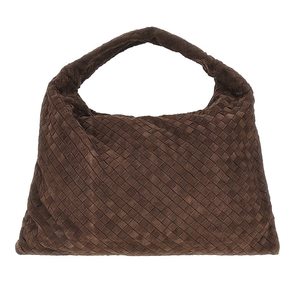 Large Hop shoulder bag made from soft suede leather with signature Intrecciato motif. Magnetic closure. Nappa leather lining and one inner zippered flat pocket. DETAILS Height: 35 cm Depth: 13 cm Width: 54 cm Codice Modello: 763970 Stagione: FW25 Materiale: 100% LH Made in: Italy Sku: 26825 Brand: BOTTEGA VENETA