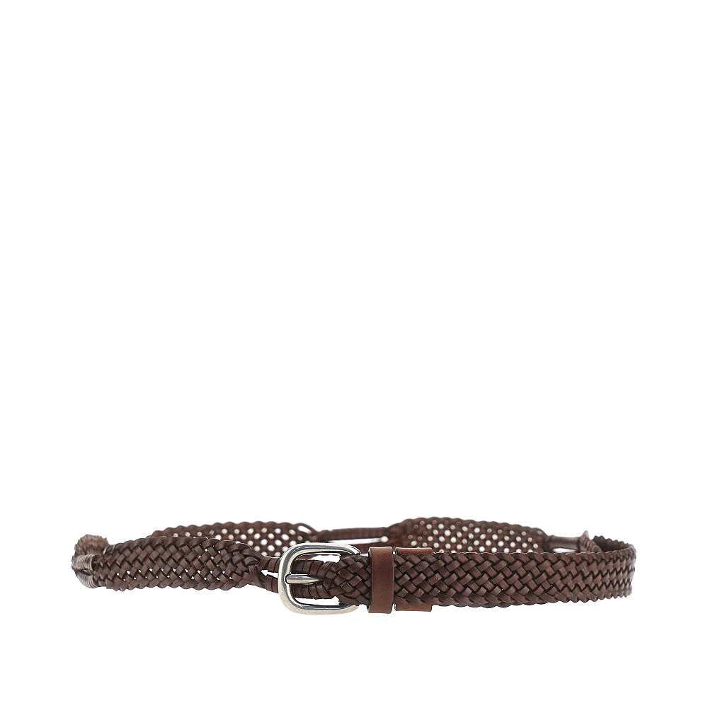 Belt made from braided leather, featuring silver-finished metal buckle. DETAILS Height: 2,5 cm Model code: MAUND212 Color code: C6719 Season: SS26 Material: 100% LH Made in: Italy Sku: 34413 Color: Brown Brand: BRUNELLO CUCINELLI