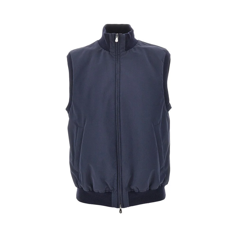 Vest made from matte-finished nylon with Thermore® insulating padding. Micro ribbed knit standing collar, arm holes and bottom hem. Two-way zip closure. Side welt pockets with concealed press-stud. Water-repellent nylon lining. Regular fit. DETAILS Model code: MM4796584 Color code: CIR70 Season: SS26 Material: 70% PL, 30% PA Made in: Italy Sku: 30240 Color: Blue Brand: BRUNELLO CUCINELLI