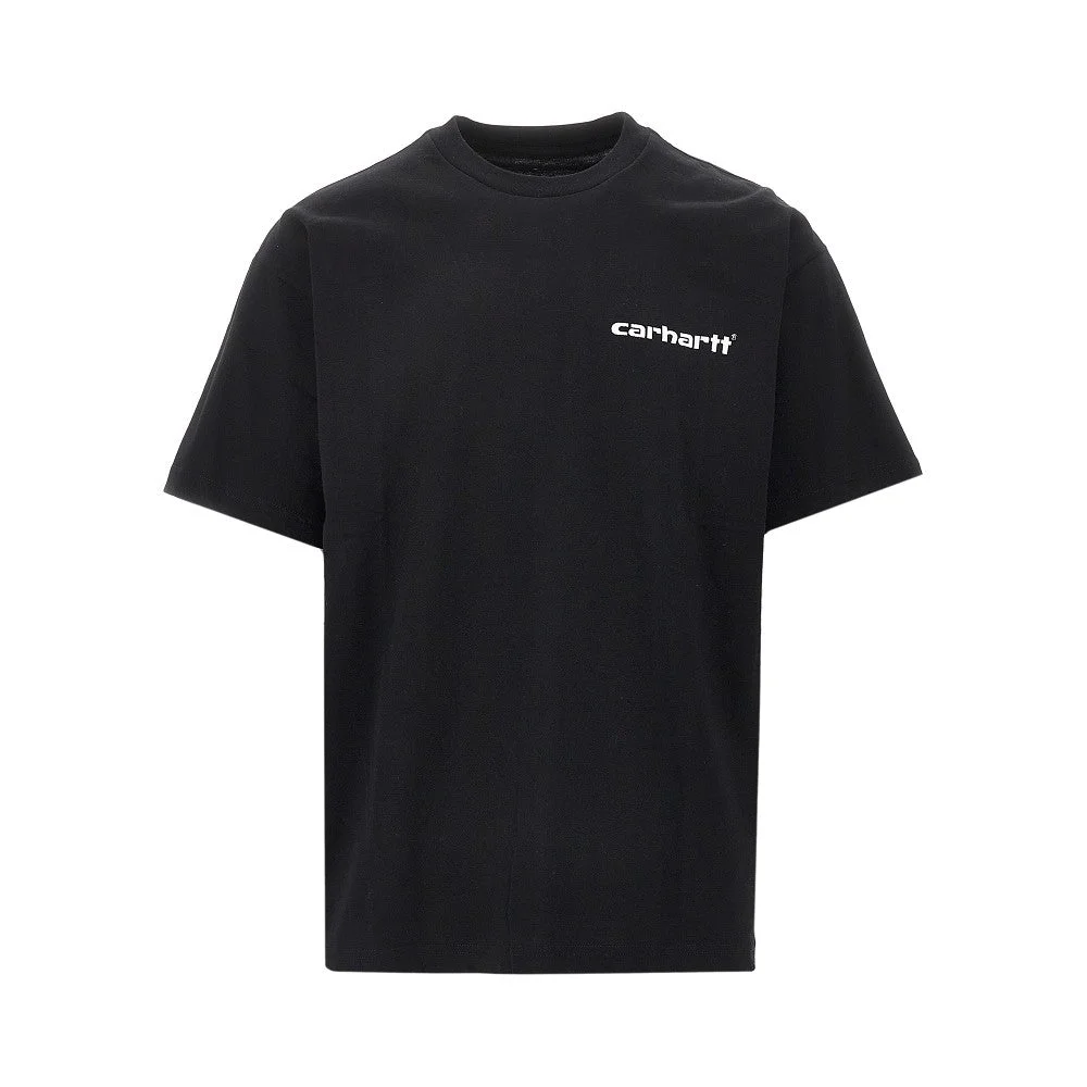 Short-sleeved T-shirt made from organic cotton jersey, enriched with graphic print on the back and logo print on the chest. Micro ribbed crewneck. Loose and squared fit. DETAILS Model code: I036001 Color code: 89XX Season: SS26 Material: 100% ORGANIC CO Made in: Bulgaria Sku: 29626 Color: Black Brand: CARHARTT WIP