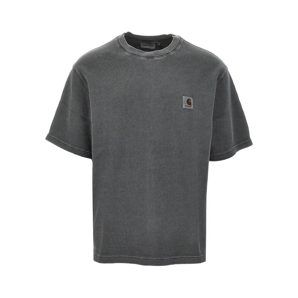 Short-sleeved T-shirt made from garment-dyed cotton waffle jersey with washed-out effect, enriched with signature jacquard fabric squared logo label on the chest. Micro ribbed crewneck. Relaxed fit. DETAILS Model code: I036185 Color code: 89GD Season: SS26 Material: 100% CO Made in: Bangladesh Sku: 33378 Color: Black Brand: CARHARTT WIP
