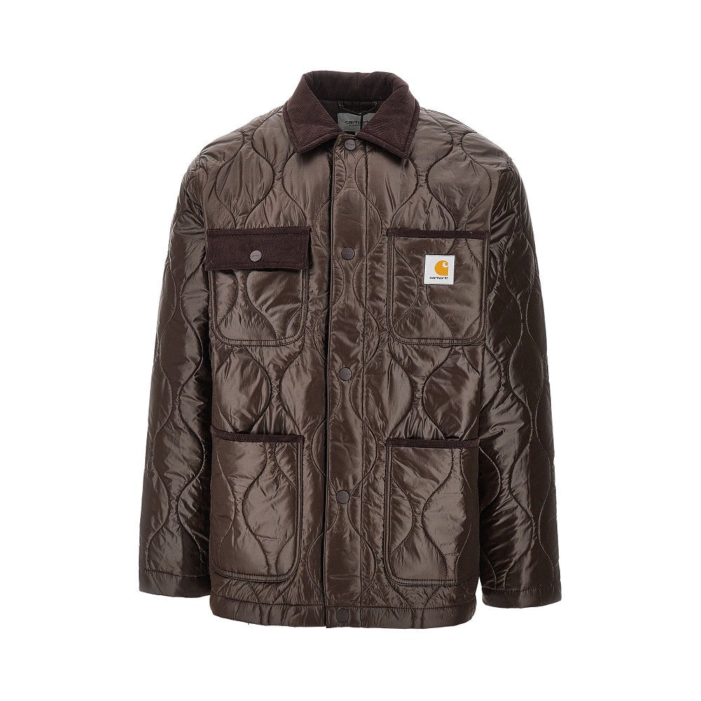 Jacket made from polyester ripstop with lightweight synthetic padding and wavy quilting, featuring corduroy collar and trimmings. Press-studs closure. Four patch pockets at front (one on the chest with flap). Signature squared logo label on the chest. Comfort fit. DETAILS Model code: I035366 Color code: 33HXX Season: FW25 Material: 100% PL Made in: Bangladesh Sku: 28707 Color: Red Brand: CARHARTT WIP