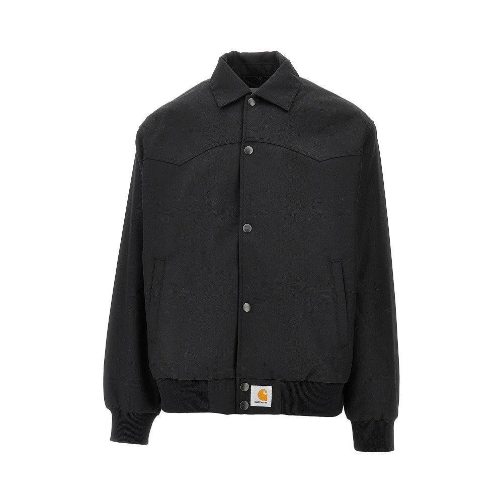 Jacket made from wool-blend twill with ribbed knit cuffs and bottom hem. Front press-studs closure, classic pointed collar, side welt pockets and squared logo label at front bottom. Poplin lining. Regular fit. DETAILS Codice Modello: I035622 Stagione: FW25 Materiale: 55% PL, 45% WO Made in: Tunisia Sku: 26371 Brand: CARHARTT WIP