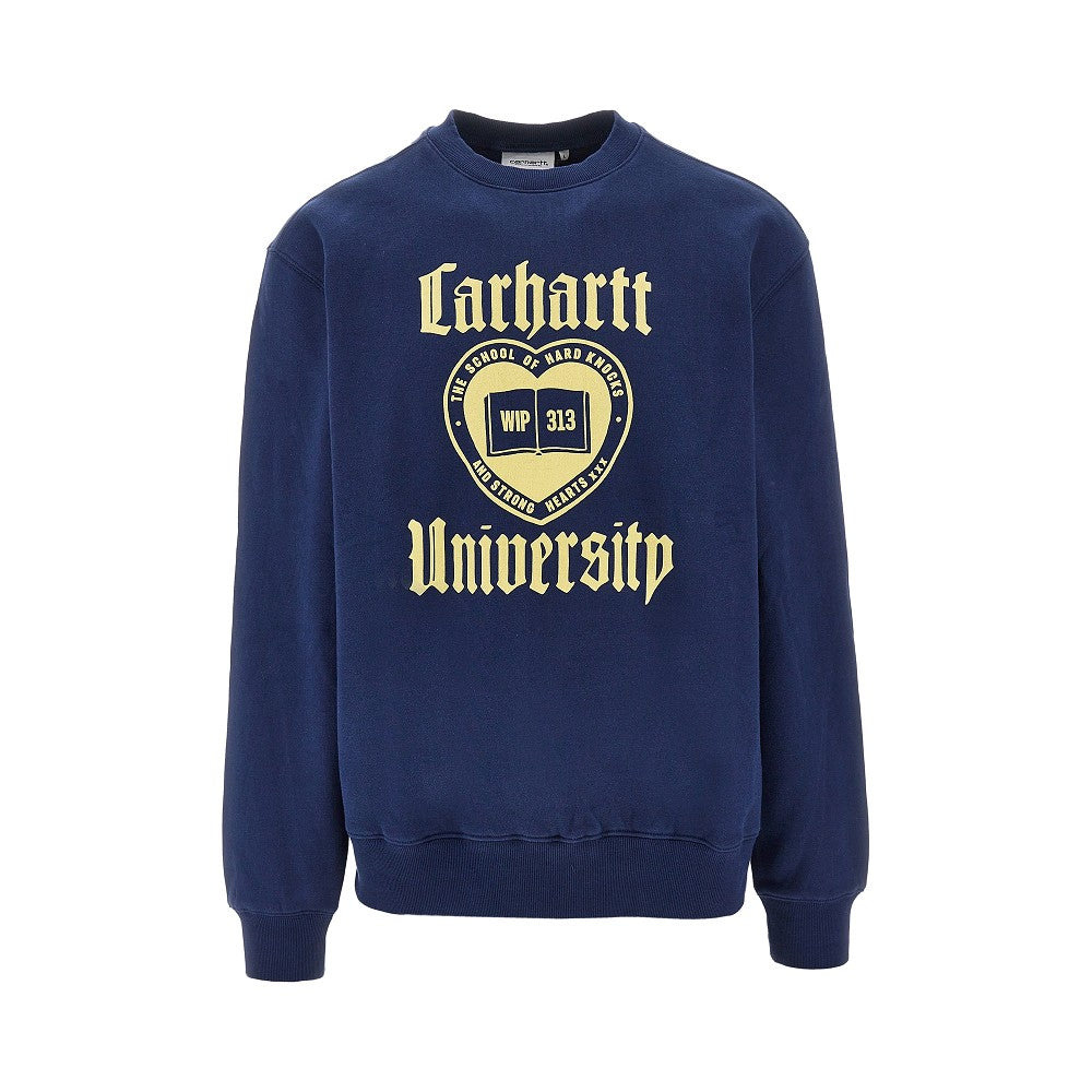 Sweatshirt made from fleece-back cotton jersey, enriched with 'Carhartt University' graphic print at front. Ribbed crewneck, cuffs and bottom hem. Regular fit. DETAILS Model code: I035642 Color code: VQXX Season: FW25 Material: 100% CO Made in: Bangladesh Sku: 28275 Color: Blue Brand: CARHARTT WIP