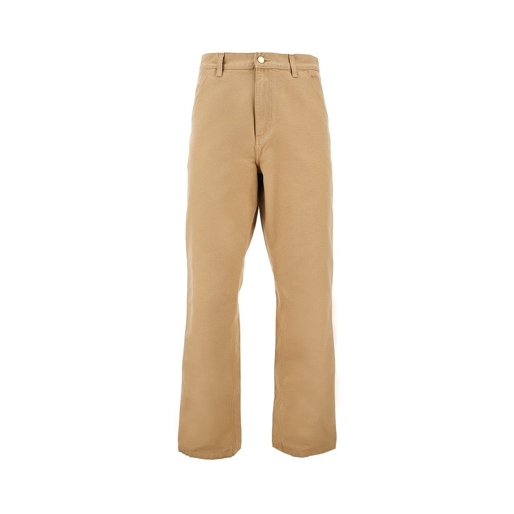 Single Knee pants in organic cotton canvas, featuring relaxed and straight leg cut. Regular waist, belt loops, side slanted pockets, workwear pockets and rear patch pockets. Zip fly and branded button closure. Logo patch on the rear right pocket. DETAILS Codice Modello: I031497 Stagione: SS25 Materiale: 100% CO Made in: Tunisia Sku: 17159 Brand: CARHARTT WIP