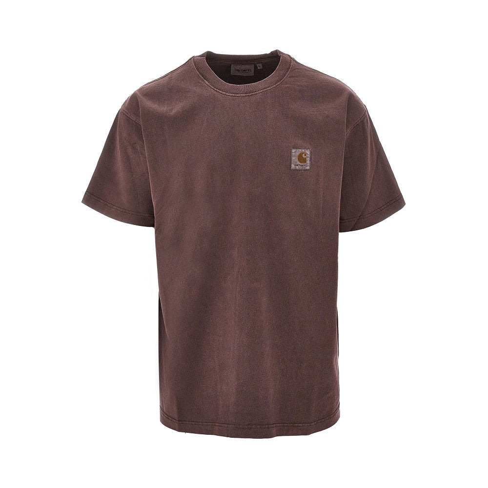 Short-sleeved T-shirt made from garment dyed cotton jersey with faded effect, enriched with signature squared logo patch on the chest. Micro ribbed crewneck. Relaxed fit. DETAILS Model code: I030780 Color code: 33HGD Season: FW25 Material: 100% CO Made in: Bangladesh Sku: 28266 Color: Red Brand: CARHARTT WIP