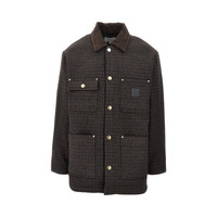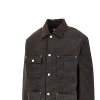 Short coat made from heavy wool-blend yarn, featuring all-over pied-de-poule motif. Micro ribbed corduroy pointed collar, branded buttons closure and four patch pocket on front, one of which with flap. Sleeve bottom with buttons. Matelasse lining. Regular fit. DETAILS Model code: I035344 Color code: 35MXX Season: FW25 Material: 60% PL, 40% WO Made in: Bangladesh Sku: 29371 Color: Brown Brand: CARHARTT WIP