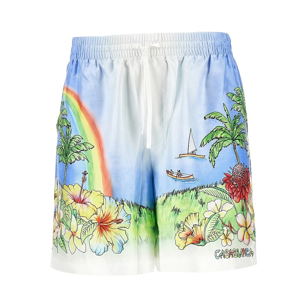 Shorts made from pure silk twill with "Aloha" print. Adjustable elasticated waist with drawstring. Side slanted pockets and rear patch one. Regular fit with wide leg. DETAILS Model code: MSP26TR39910EXBC Color code: ALOHA Season: SS26 Material: 100% SE Made in: Italy Sku: 33093 Color: Multicolor Brand: CASABLANCA