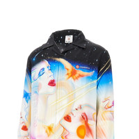 Shirt made from pure silk twill with 'Galactic Connection' print. Cuban collar, concealed buttons closure, chest patch pocket and cuffs with gold-finished metal and enamel button. Regular fit. DETAILS Model code: U-MPF25-SH-006-02 Color code: Season: FW25 Material: 100% SE Made in: Italy Sku: 29033 Color: Multicolor Brand: CASABLANCA