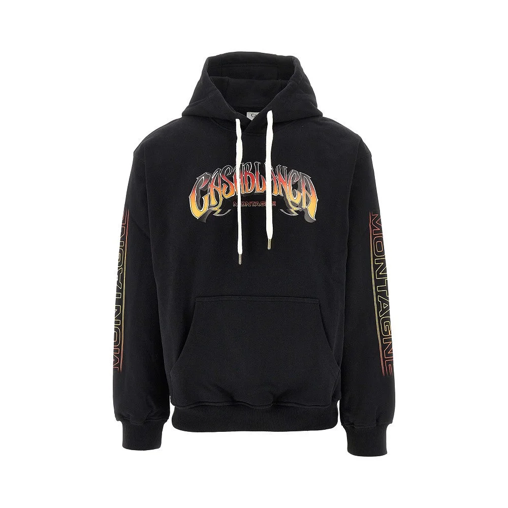 Hoodie made from cotton french terry, enriched with graphic logo print at front and 'Montagne' print on the sleeves. Hood with drawstring. Kangaroo pocket. Micro ribbed cuffs and bottom hem. Relaxed fit. DETAILS Model code: M-AW25-JTP-292-01 Color code: BLACK LOOPBACK Season: FW25 Material: 100% CO Made in: Portugal Sku: 29059 Color: Black Brand: CASABLANCA
