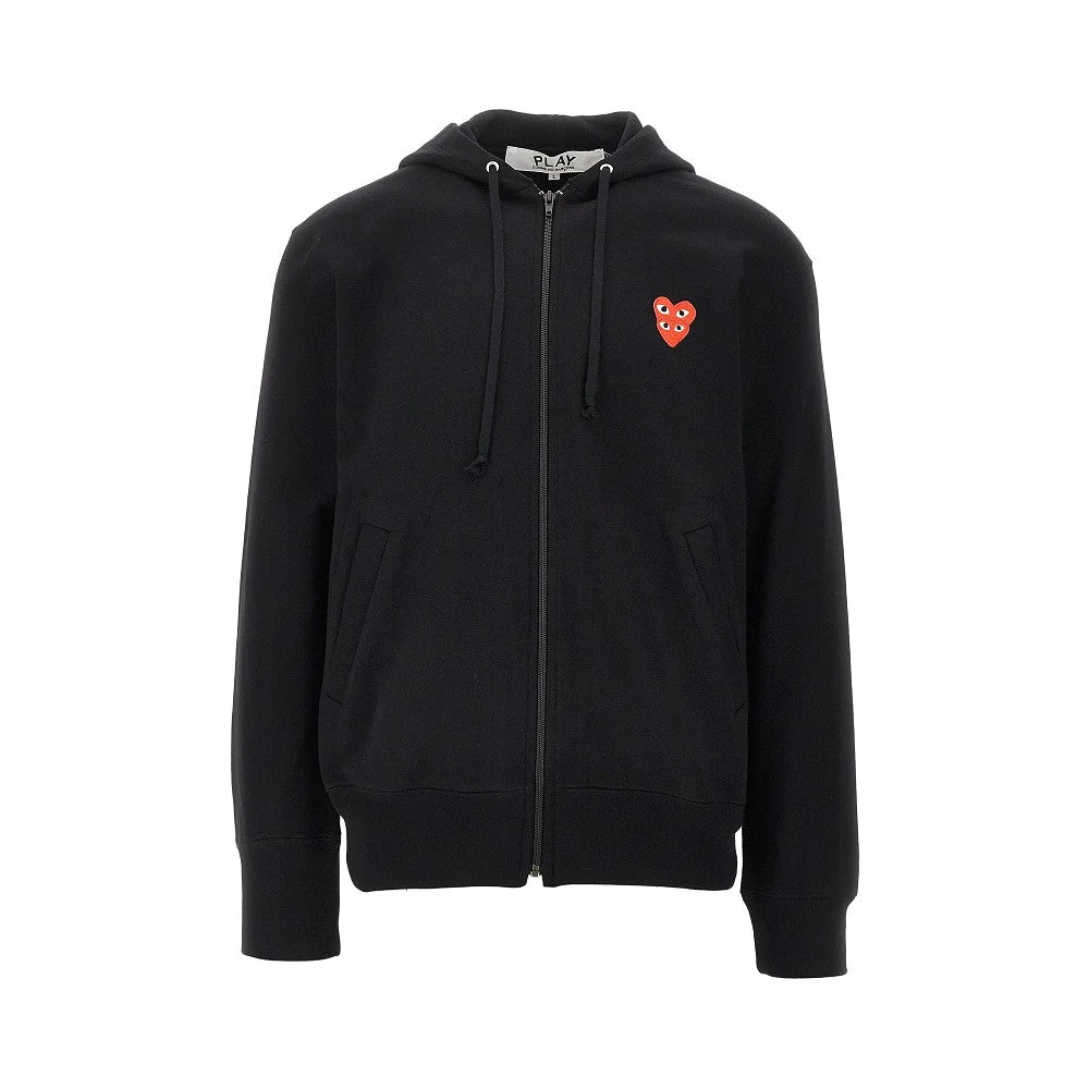 Sweatshirt made from cotton french terry, enriched with embroidered heart patches on the chest. Full-zip closure, hood with drawstring and side welt pockets. Micro ribbed cuffs and bottom hem. Regular fit. DETAILS Model code: AX-T294-051 Color code: BLACK Season: FW25 Material: 100% CO Made in: Japan Sku: 30032 Color: Black Brand: COMME DES GARCONS PLAY