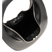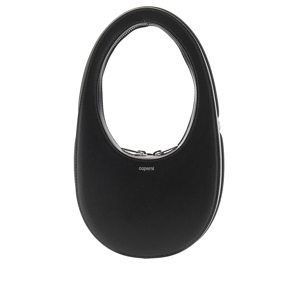 Mini Swipe bag made from smooth leather, featuring rigid design with cut-out handles. Silver-finished metal two-way zip closure. Detachable leather shoulder strap to carry crossbody. Silver-tone logo print on front. Leather lining. DETAILS Height: 11 cm Depth: 5,5 cm Width: 16 cm Codice Modello: COPBA118F6031 Stagione: FW25 Materiale: 100% LH Made in: Italy Sku: 24416 Brand: COPERNI